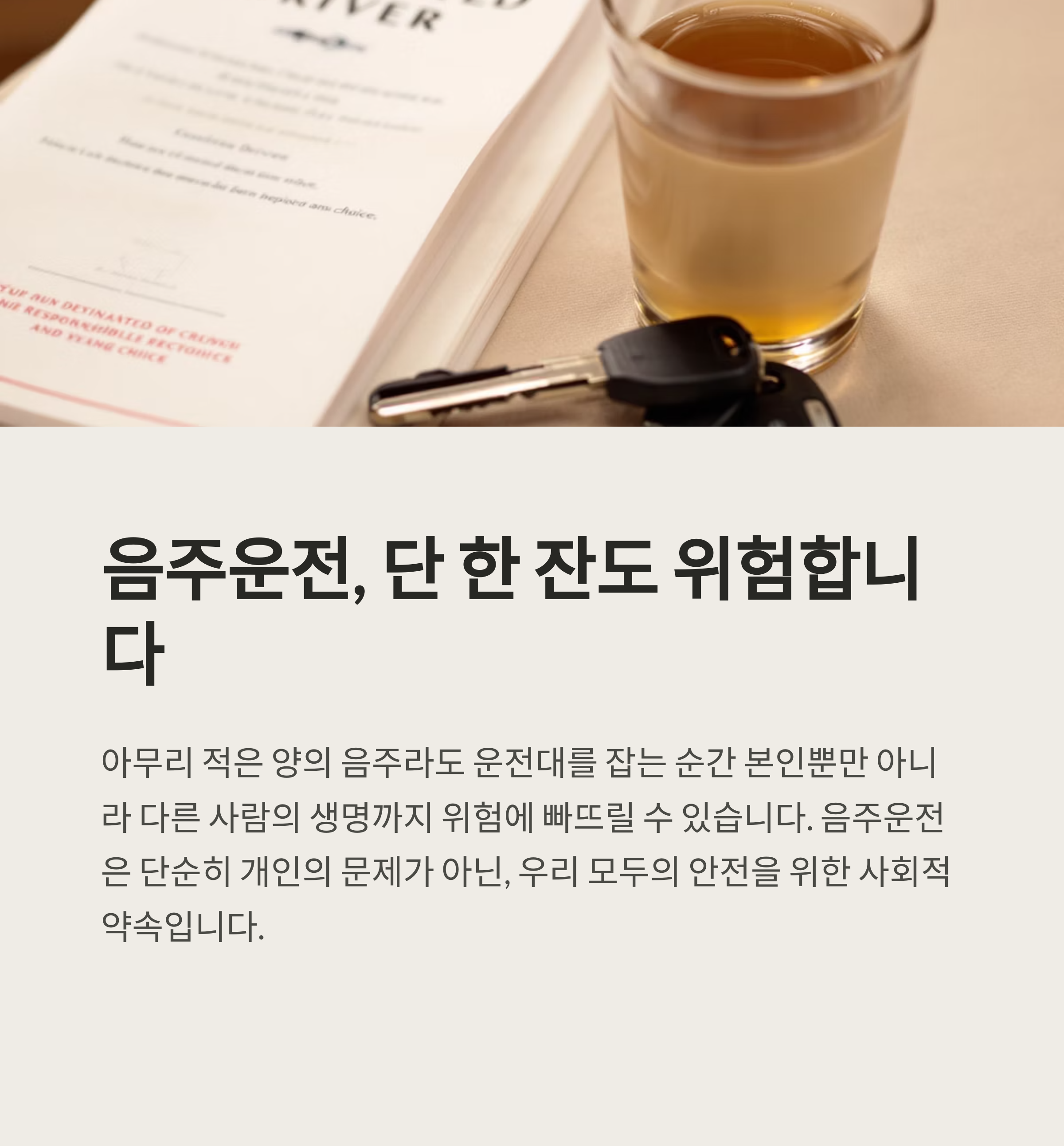 무엇보다 중요한 것은 음주운전 자체를 하지 않는 것입니다. 아무리 적은 양의 음주라도 운전대를 잡는 순간 본인뿐만 아니라 다른 사람의 생명까지 위험에 빠뜨릴 수 있다는 점을 항상 기억해주시기 바랍니다.
