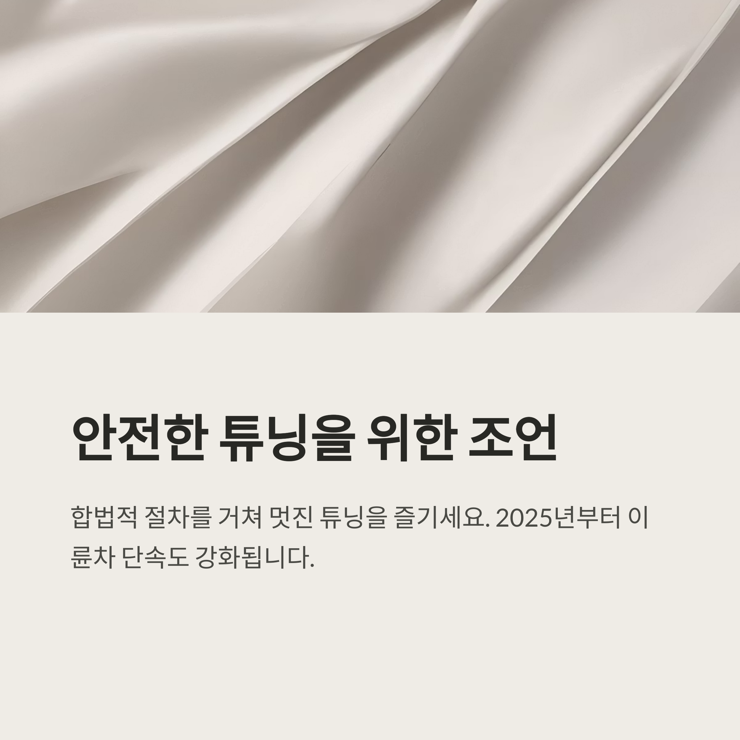 특히 2025년부터는 이륜차에 대한 단속도 대폭 강화되니, 이륜차를 운행하시는 분들도 각별한 주의가 필요합니다. 합법적인 절차를 거쳐 안전하고 멋진 튜닝을 즐기시기 바랍니다.