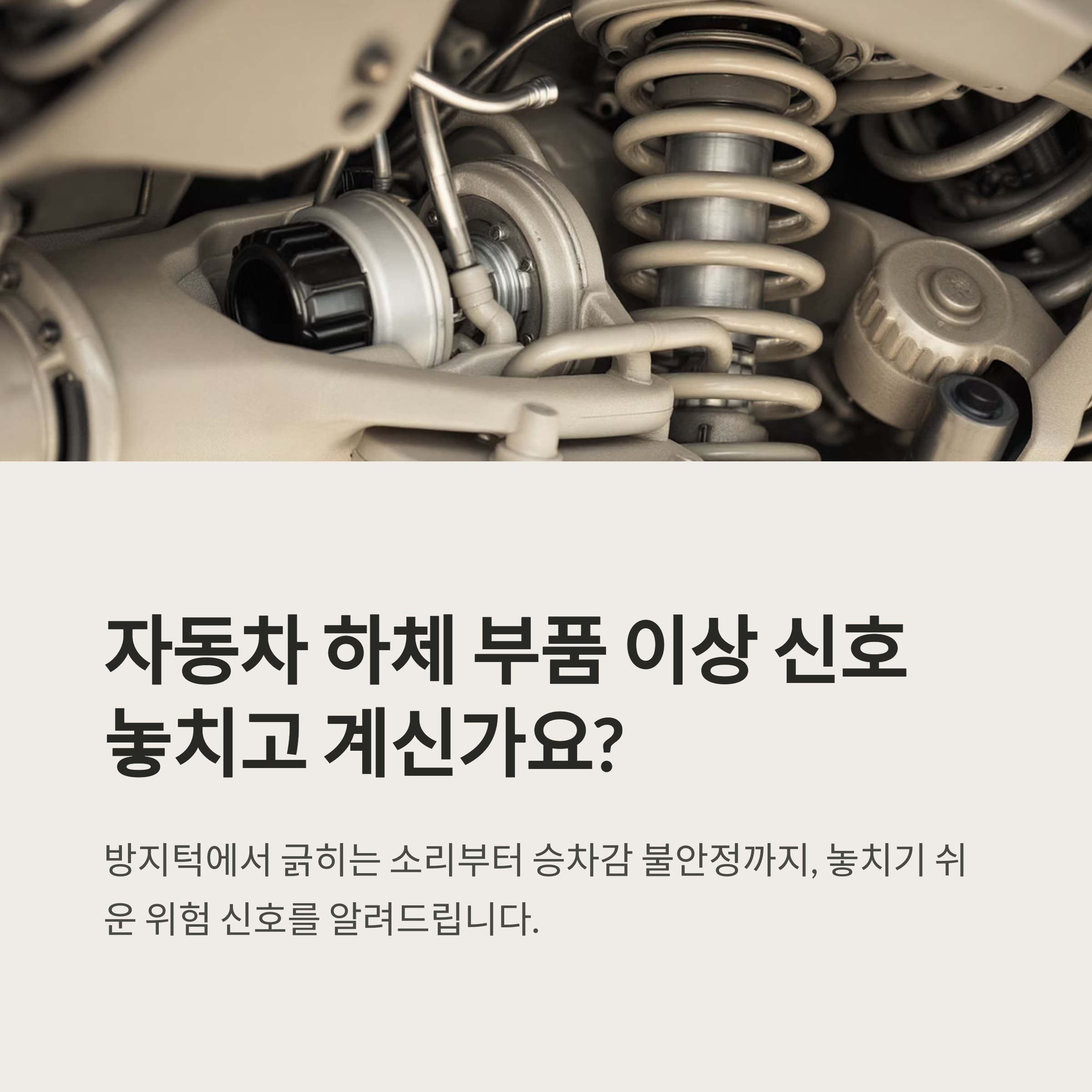 - 하체 부품 문제는 승차감 저하를 넘어 제동 거리와 운전 안전에 직접적인 영향을 미칩니다.