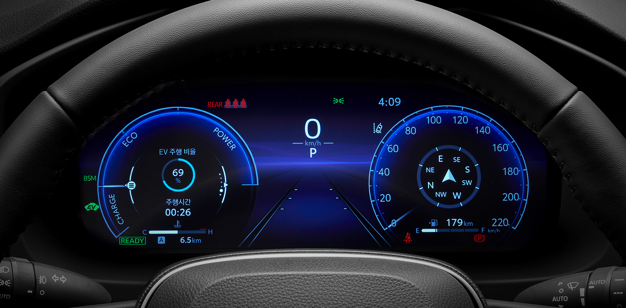 사륜구동 시스템은 모터를 통해 뒷바퀴를 구동하는 e-Four 방식을 채택했습니다. 일반 기계식 사륜구동보다 험로 주파력은 떨어지지만 효율성과 안정감에 중점을 둔 설계로, 도심형 SUV로서의 정체성에 부합합니다.