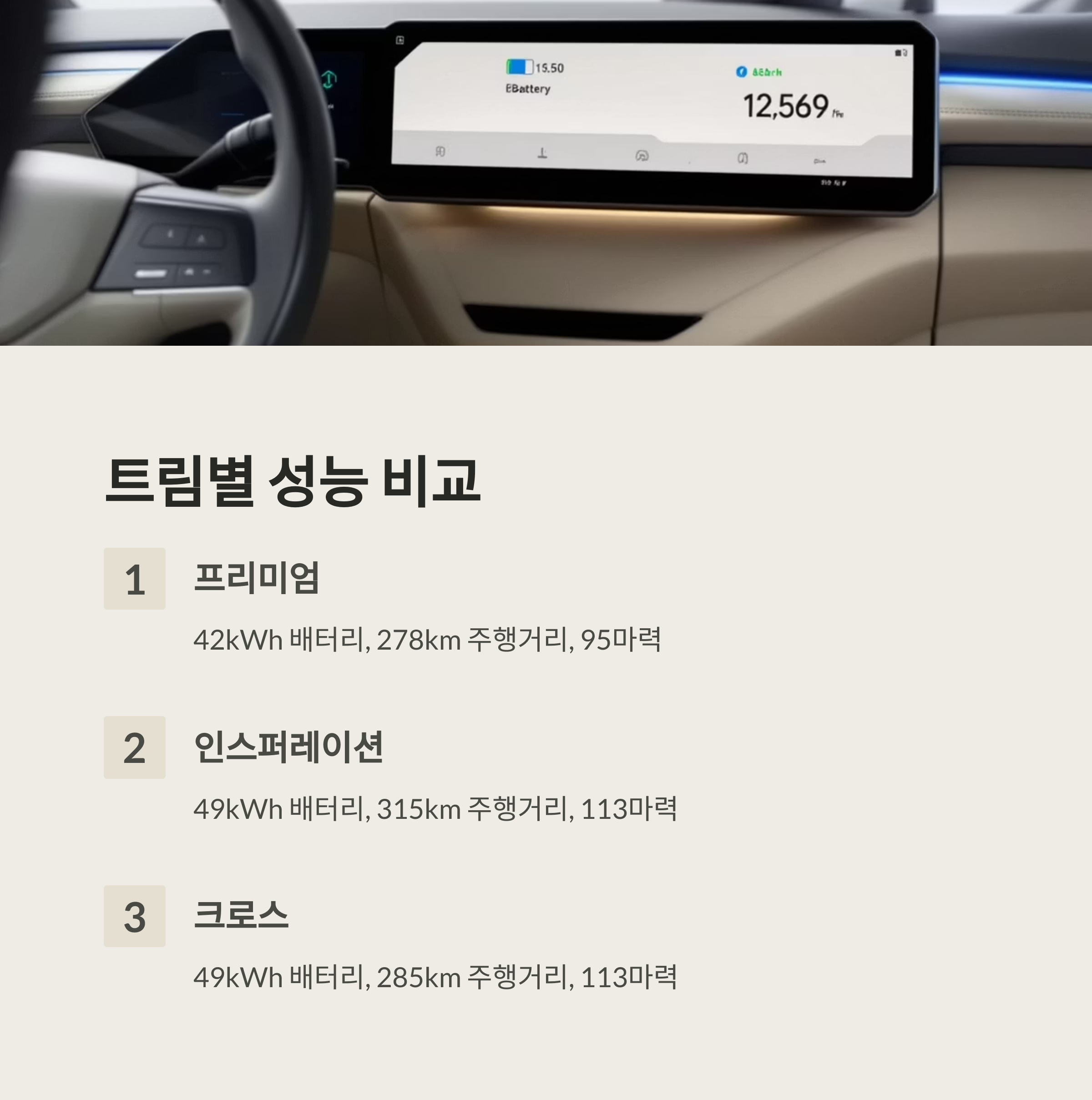 2. 트림별 배터리 용량과 성능 비교