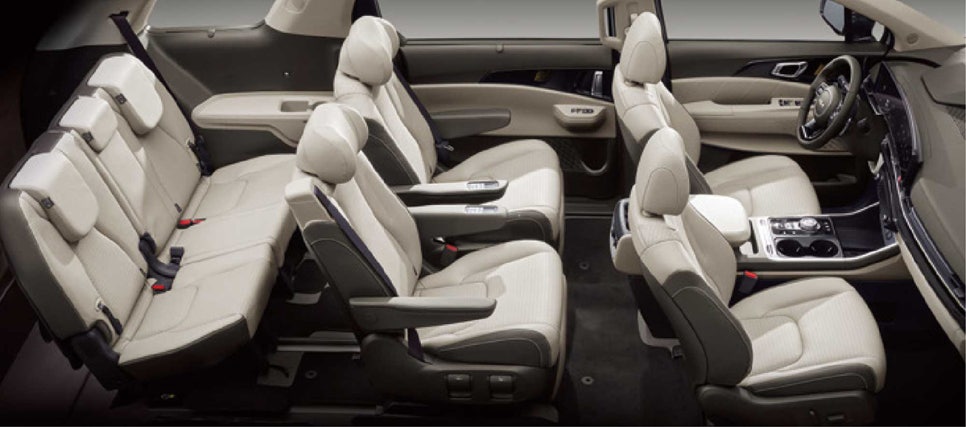 2열(뒷좌석): 카니발에서 가장 편안하고 좋은 좌석입니다. 7인승 모델의 경우 캡틴 시트가 제공되어 고급스러운 느낌을 주며, 열선/통풍 기능이 적용됩니다. 전동 슬라이딩 도어, 220V 전원 콘센트, 레그 서포트등 다양한 편의 사양이 제공되어 편안한 탑승 경험을 선사합니다.
