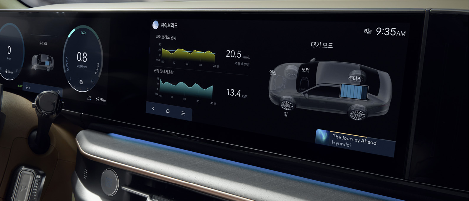 인포테인먼트 시스템은 최신 CCNC(Connected Car Navigation Cockpit) 기반으로 다양한 기능을 제공합니다. 12.3인치 듀얼 디스플레이, 헤드업 디스플레이, 서라운드 뷰 모니터 등의 첨단 기능들이 탑재되어 사용자 경험을 향상시킵니다.