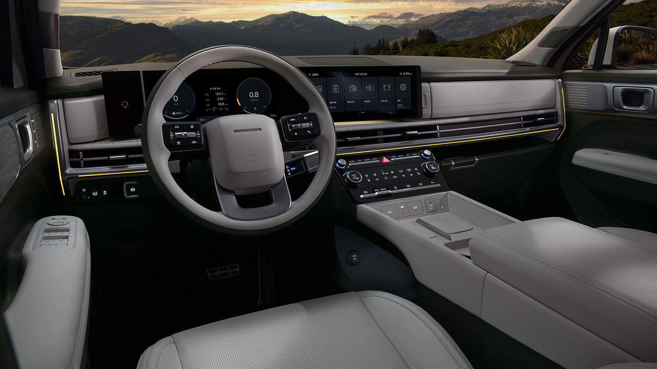 대형 SUV임에도 불구하고, 하이브리드 시스템의 무게 배분과 저중심 설계로 인해 코너링에서 안정적인 자세를 유지합니다. SUV 특유의 높은 차체와 서스펜션 설계로 노면 충격을 잘 흡수하며, 장거리 운전이나 가족 단위 이동에 적합한 편안한 승차감을 제공합니다.